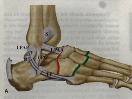 La sollecitazione meccanica viene assorbita principalmente dal compartimento legamentoso laterale della caviglia, che può essere schematicamente diviso in tre parti: