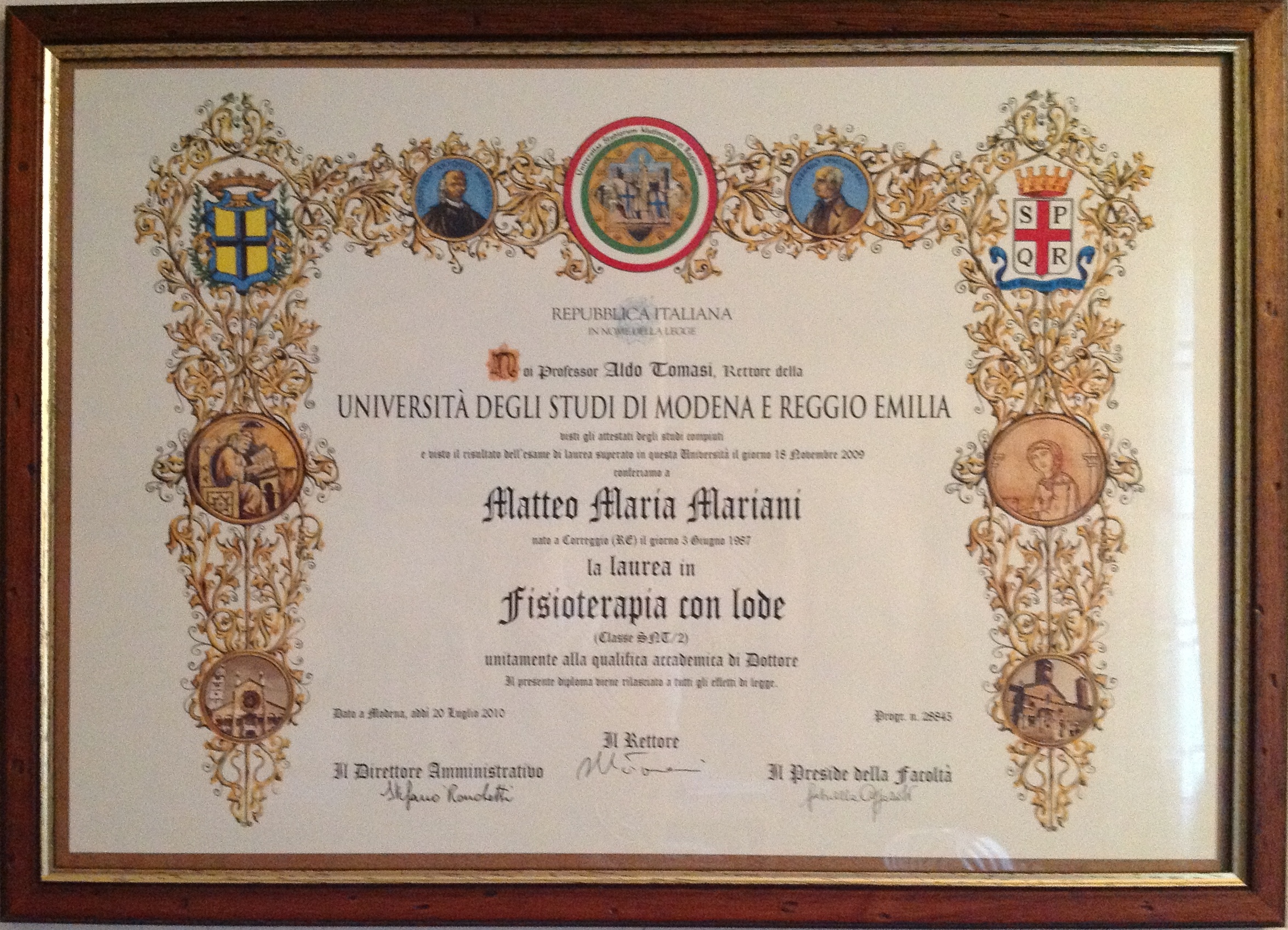Partendo da una formazione scientifico-tecnologica (2006) comincio a interessarmi al mondo del funzionamento della macchina umana iscrivendomi al percorso di laurea in Fisioterapia presso l’Università degli studi di Modena e Reggio Emilia (2006-2009).